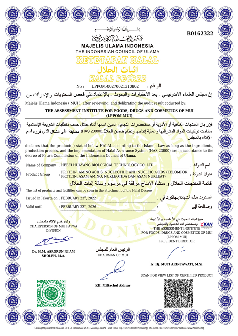 河北華陽(yáng)集團(tuán)坐落于河北省衡水市冀州區(qū)省級(jí)工業(yè)園區(qū)(始建于1987年,前身為冀州市華陽(yáng)化工有限責(zé)任公司)。集團(tuán)下屬四個(gè)公司:河北華陽(yáng)生物科技有限公司、河北華悅氨基酸科技有限公司、滄州華晨生物科技有限公司、衡水市陽(yáng)力商貿(mào)有限公司。主要生產(chǎn)甘氨酸、L-丙氨酸、L-蘇氨酸、DL-蛋氨酸、L-賴(lài)氨酸鹽酸鹽、L-半胱氨酸鹽酸鹽、干貝素等氨基酸系列食品級(jí)產(chǎn)品,廣泛應(yīng)用于食品、飲料、飼料等行業(yè)。......